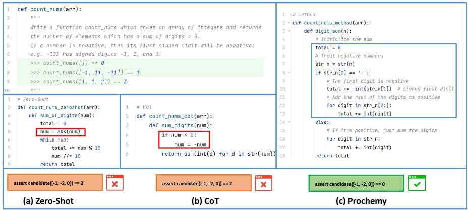 案例分析:通过具体任务(如HumanEval/108的代码生成和atcoder_ABC137_D的代码翻译)表明,Prochemy生成的代码更准确、结构更清晰,且包含解释性注释,提升了可读性和鲁棒性。